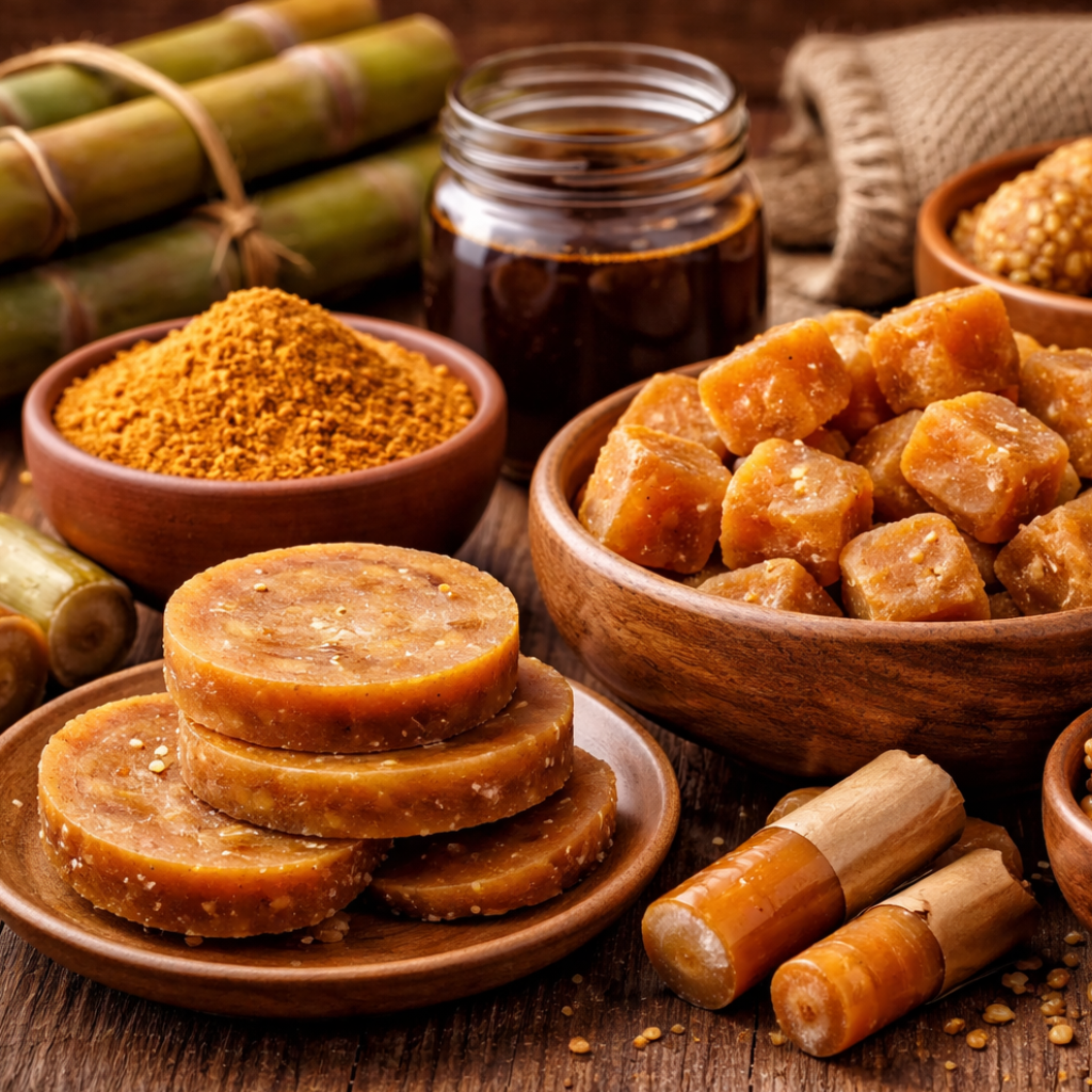- Kolhapuri jaggery is a natural sweetener produced using traditional open-pan methods from locally grown sugarcane.